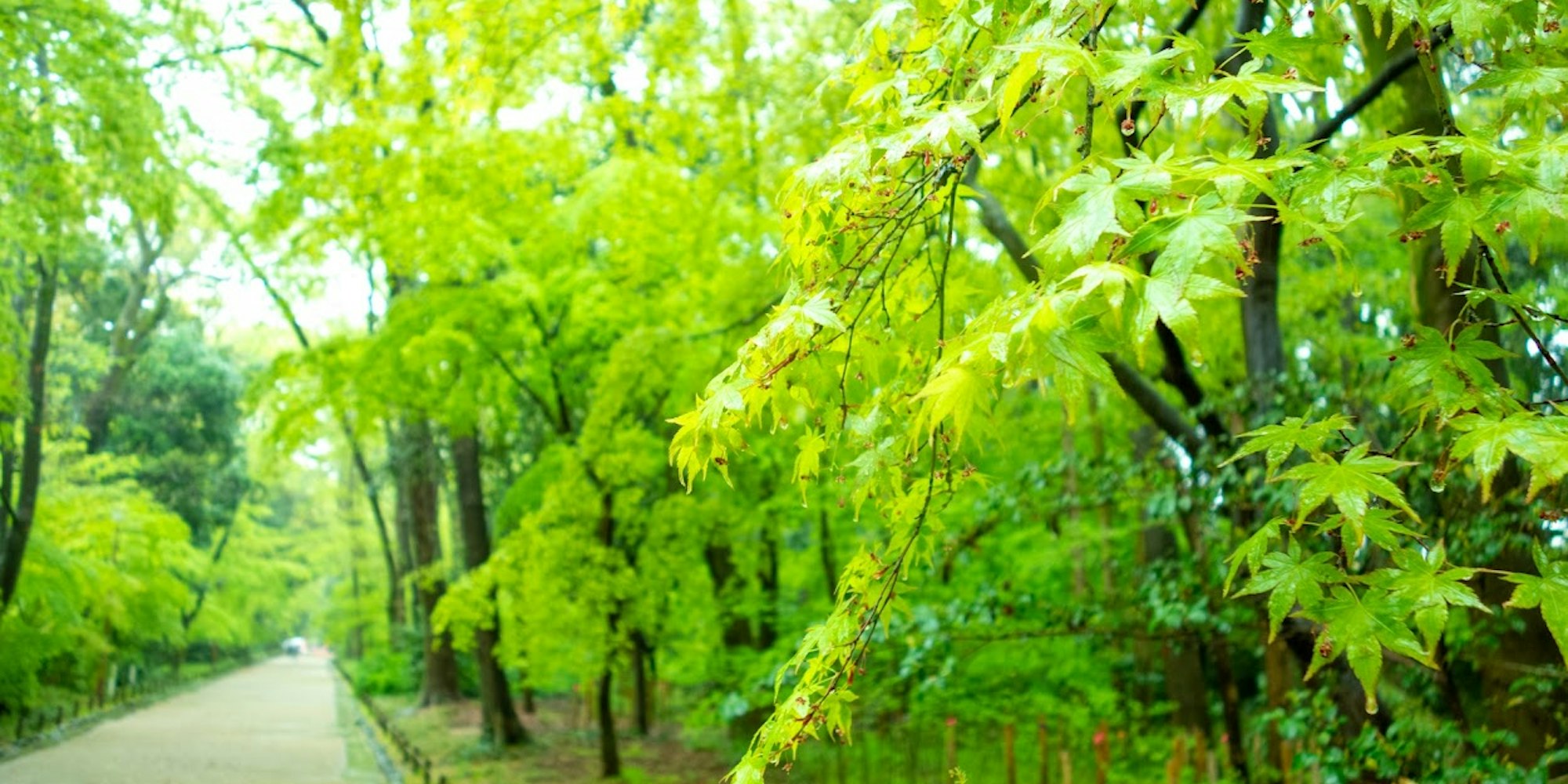 Tadasu no Mori, located within the Shimogamo Shrine area, is a popular healing power spot in Kyoto. The path through this ancient forest forms a tunnel of trees, enveloping visitors in completely different atmospheres with each season, from fresh green leaves to autumn colors.