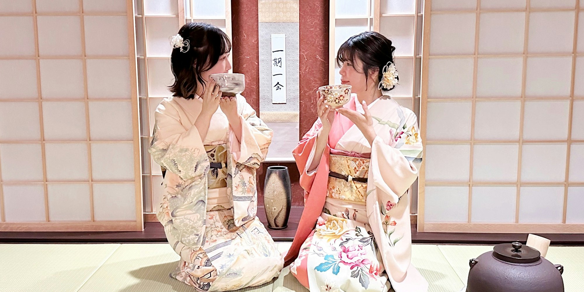 茶道教室距離wargo京都祇園店徒步僅1分鐘,換上和服後,一起悠閒地體驗日本傳統文化吧!