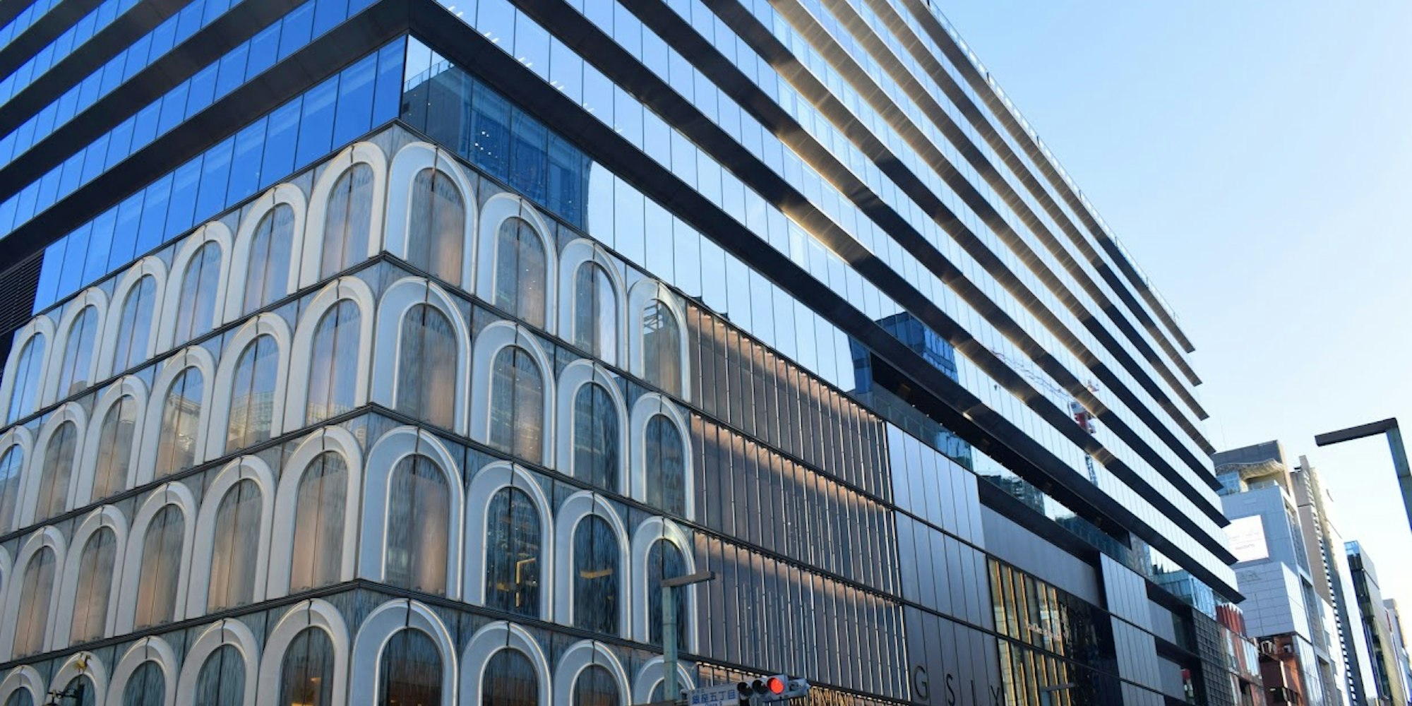 東急プラザ銀座は、ガラス張りの美しい建物が写真映えする商業施設です。外観は江戸切子をモチーフにしており、個性的でありながら品のある姿をしています。建物全体がガラスで覆われており、時間帯や天気によって違った表情を見せてくれるため、ぜひ光の当たるタイミングで写真を撮ってみてください。