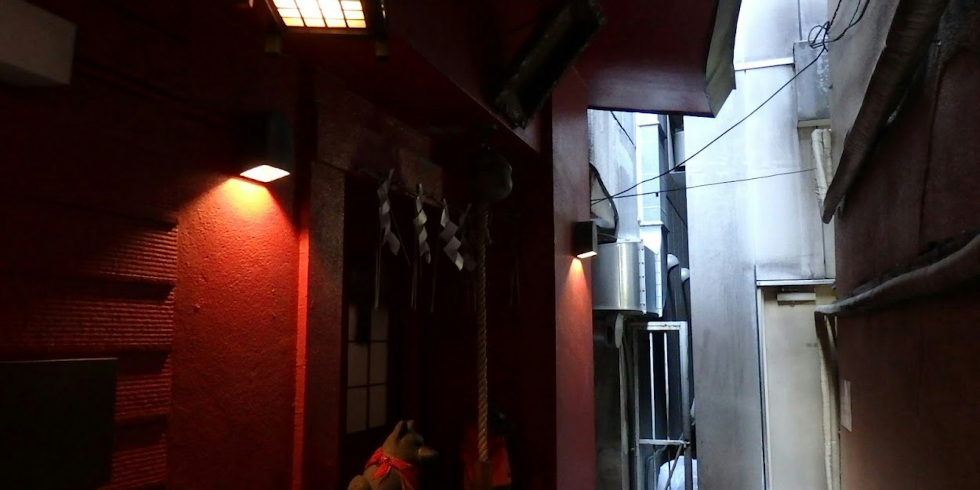豊岩稲荷神社は、銀座の狭い路地にこっそり佇む神社です。のぼりが目印となっていますが、知らないと見つけられないでしょう。